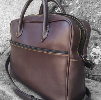 Le modèle présenté est réalisé à la main dans un cuir Novonappa marron issu de l’upcycling.